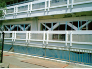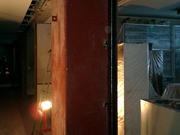 一部場所が狭くレッカー車が入らかった 為ご覧のようにカニクレーンを使用してブレースを建て込みました
