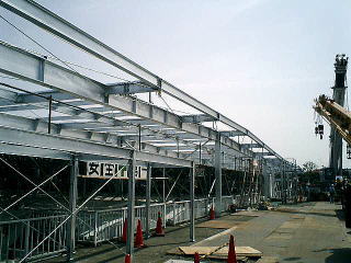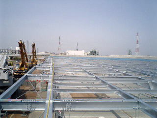 溶融亜鉛メッ キ仕上げ鉄骨建方の際は、300tラフターにて作業をしました。
