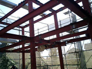 写真は、建方作業中の写真です